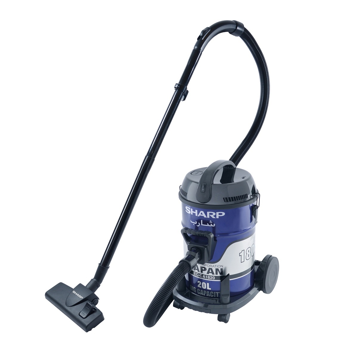مكنسة شارب الأسطوانية بقوة 1800 واط وسعة 20 لتر تنظف بكل كفاءة وهدوء، مزودة بمحرك نحاسي 100% وفلتر SMS لتنقية الهواء، تصميم عملي مع سلك طويل وعجلات سهلة الحركة.